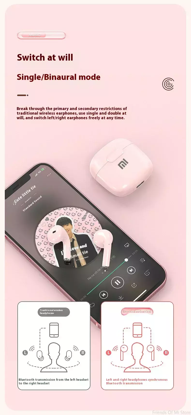 6 Opções de cores: Nossos fones de ouvido sem fio cores da moda: branco, preto, rosa, pele, verde e roxo, atendendo às preferências masculinas e femininas.